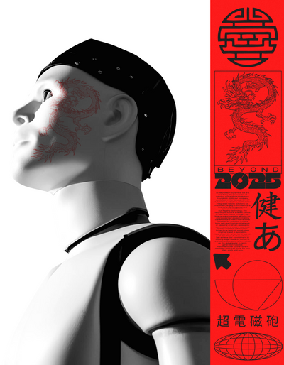 3D modeled robot with drawn tattoo for a more hectic modern ad